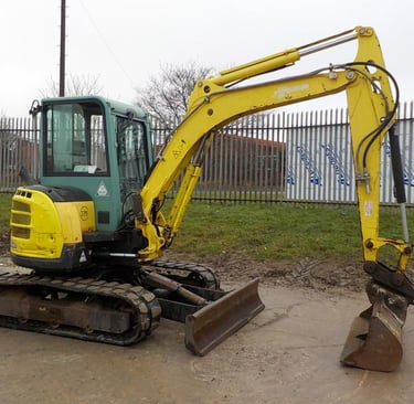 Miniescavatore Yanmar VIO50-U del 2011, cingoli in gomma, lama, offset, CV, tubazioni ausiliarie, attacco rapido idraulico, aria condizionata in cabina, motore Yanmar - modello 4TNV88-BXBVA, potenza motore: 28,8 kW / 40 hp, profondità di scavo: 3,55 mt, larghezza cingoli: 350 mm, larghezza totale: 1970 mm, lunghezza macchina: 5,25 mt, larghezza macchina: 1,97 mt, altezza macchina: 2,64 mtm, sbraccio orizzontale 3,89 m, sistema di lubrificazione automatica, funzionamento martello idraulico, certificazione C.E., garanzia.