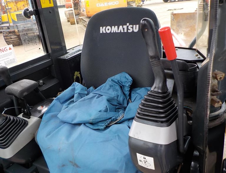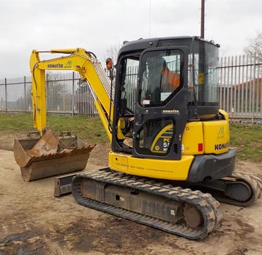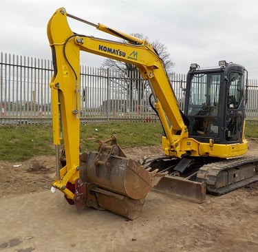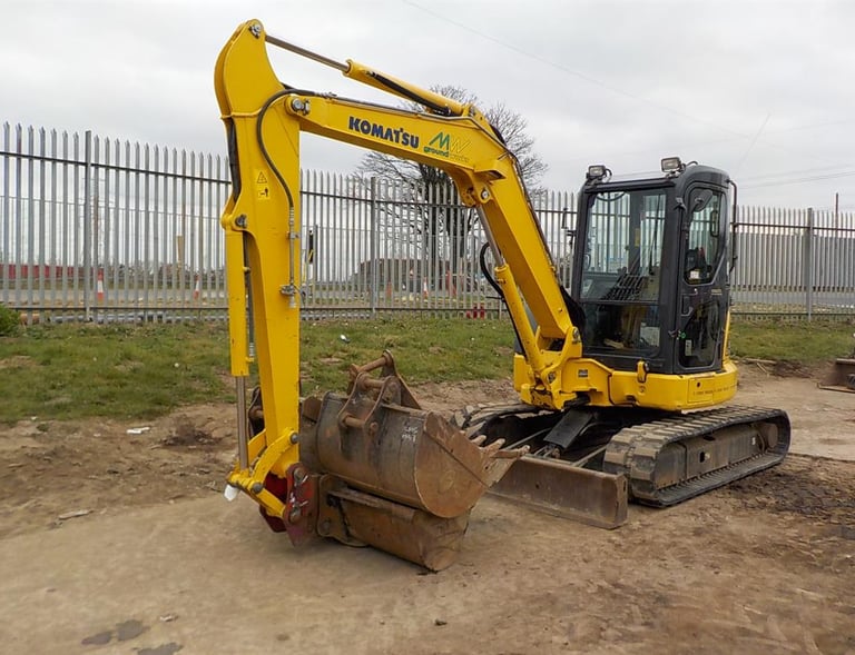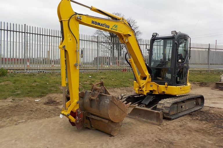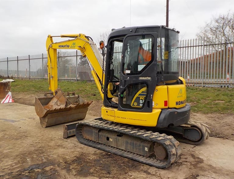 Miniescavatore Komatsu PC55MR-3 del 2012. Cabina con aria condizionata e riscaldamento, Cingoli in gomma, lama, offset, tubazioni, attacco rapido, 4 benne 50/60/90, 1 benna per la pulizia, linea ausiliaria, lubrificazione automatica, valvole di sicurezza, Attacco rapido meccanico, Pollice, Potenza: 29,5 kW / 40 CV Peso operativo: 5400 kg. Midi escavatore pronto al lavoro con tutta la documentazione in regola e certificazione CE. Garanzia del concessionario - 12 MESI.