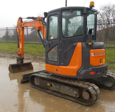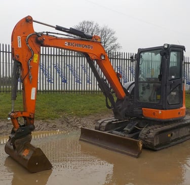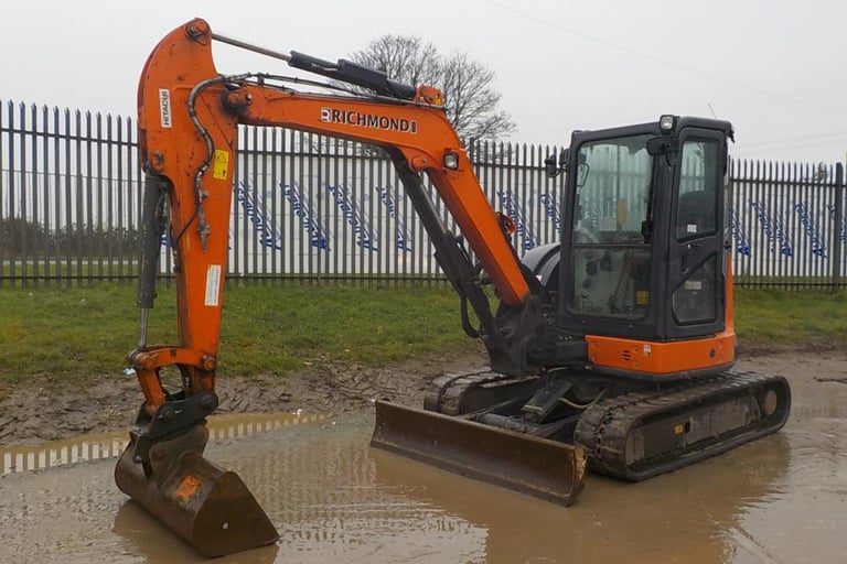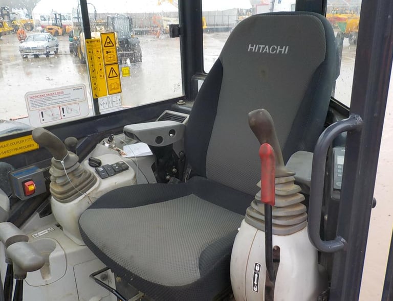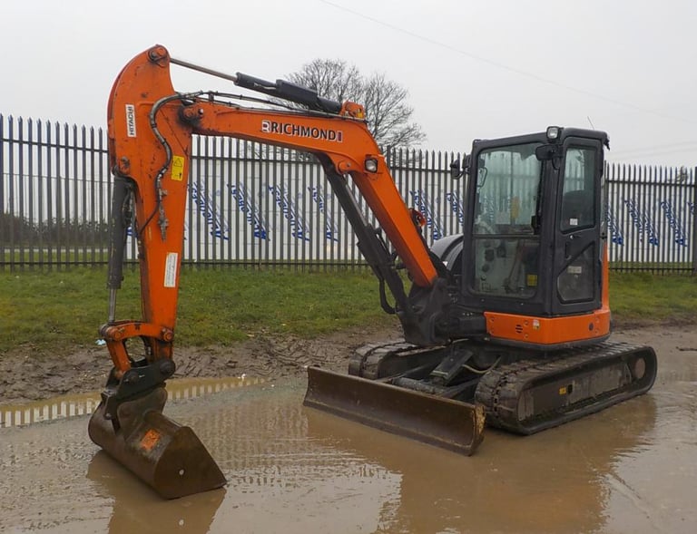 Miniescavatore Hitachi ZX48U-5A del 2014, cingoli in gomma, lama, offset, CV, tubazioni ausiliarie, attacco rapido idraulico, aria condizionata in cabina, motore Yanmar EDM - modello 4TNV88, potenza motore: 28,2 kW / 38 CV, profondità di scavo: 3,32 - 3,63 mt, larghezza cingoli: 400 mm, lunghezza macchina: 5,35 - 5,39 mt, larghezza macchina: 1,85 m, altezza macchina: 2,53 mt, sbraccio orizzontale 6,06 m, sistema di lubrificazione automatica, funzionamento martello idraulico, certificazione C.E. Garanzia del rivenditore: 12 mesi.