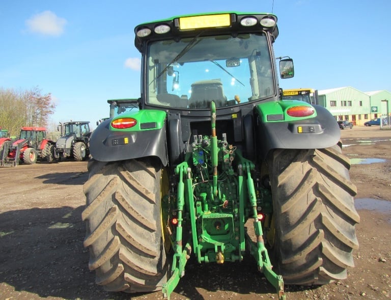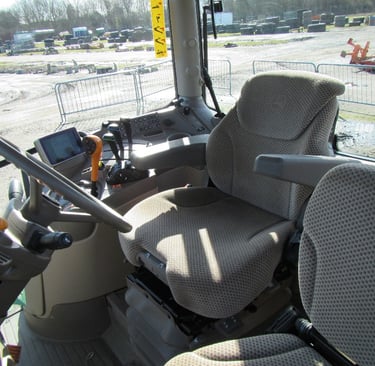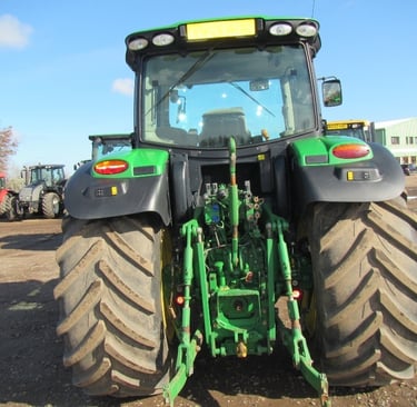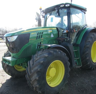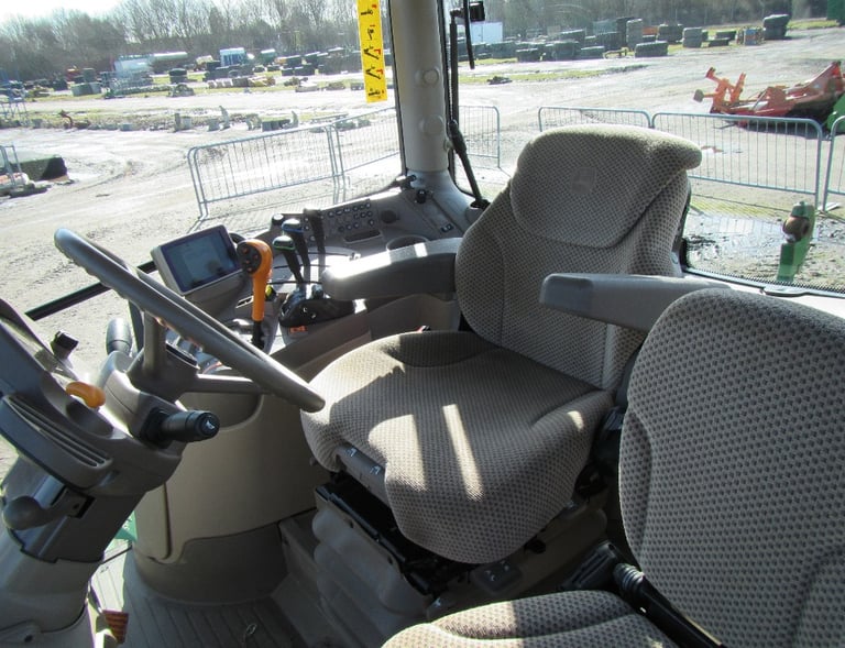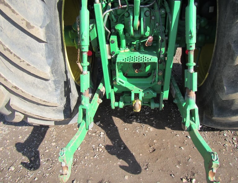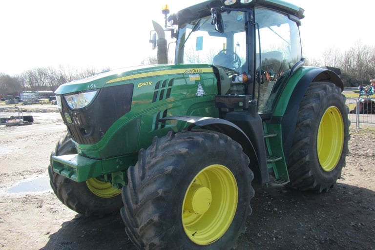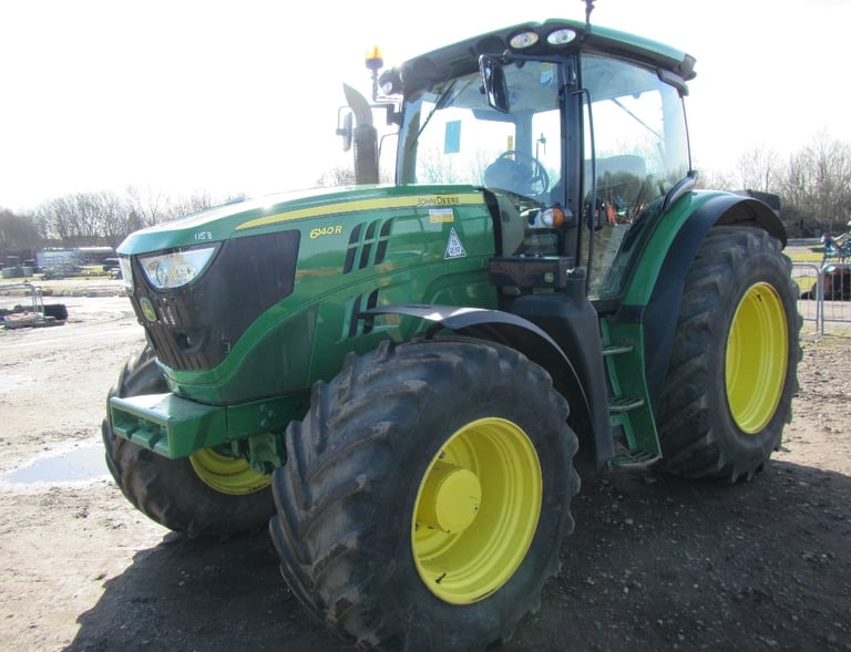 Trattore John Deere 6140R del 2014. Equipaggiamento: Sistema di sospensione dell'assale anteriore, aria condizionata, sollevatore anteriore. Cambio: semi-powershift, sospensione della cabina e dell'assale, 140 CV, 4 ruote motrici, Velocità: 40 km/h, 540/540E/1000 giri della presa di forza. Luci di lavoro anteriori, protezione cofano, servosterzo, faro di lavoro posteriore, cassetta degli attrezzi, fari allo xeno, aria condizionata, guida automatica, ingresso audio ausiliario, regolazione automatica della velocità, cruscotto, sistema di seduta girevole, specchietti elettrici, parasole, sospensione del sedile, stereo. Dimensioni pneumatici anteriori: 600/60R28, Dimensioni pneumatici posteriori: 710/60R38, 90% degli pneumatici Stato. Trattore pronto al lavoro con tutta la documentazione in regola e certificazione C.E. Garanzia del concessionario - 12 mesi.