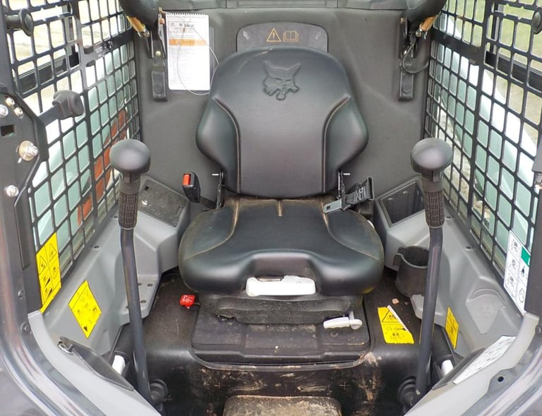 Pala compatta Bobcat S450 del 2017, con benna, aria condizionata in cabina, motore Kubota modello V2203-M-DI-E2B-BC-3, potenza motore: 36,4 KW / 49 CV, pneumatici: 10 x 16,5, Velocità: 14,8 km/h, altezza di scarico: 2,157 m, lunghezza macchina: 3,172 m, larghezza macchina: 1,49 m, altezza macchina: 1,976 m, cabina più spaziosa e comfort dell'operatore migliorato, peso: 2400 Kg, certificazione C.E. Garanzia del rivenditore - 12 mesi.