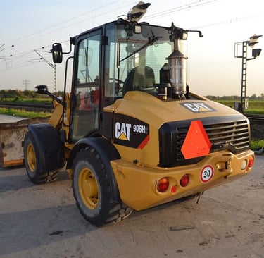 Equipped with: Cat - C3.3B DIT diesel engine, 52 kW / 70 hp, equipped with forks and loading bucket, Machine length: 5.435 m, Machine width: 1.84 m, Machine height: 2.465 m, Bucket capacity: 0.9 m3, Dump height: 2.51 m, Steering radius: 2.24 - 4.4 m (inside-outside), Speed: 30 km/h ,Tyres: 405/70 SPT9, joystick control, closed cabin heated and equipped with A.C., Mudguards, anti-pitch system, differential lock, RADIO, tyre condition (95%), Wheel loader ready for work with all documentation in order and CE certification. Dealer warranty - 12 months.
